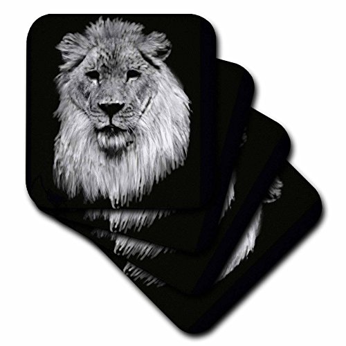 3dRose cst_36131_3 African Lion Full Head Painting in Black and White-Ceramic Tile Coasters, Set of 4