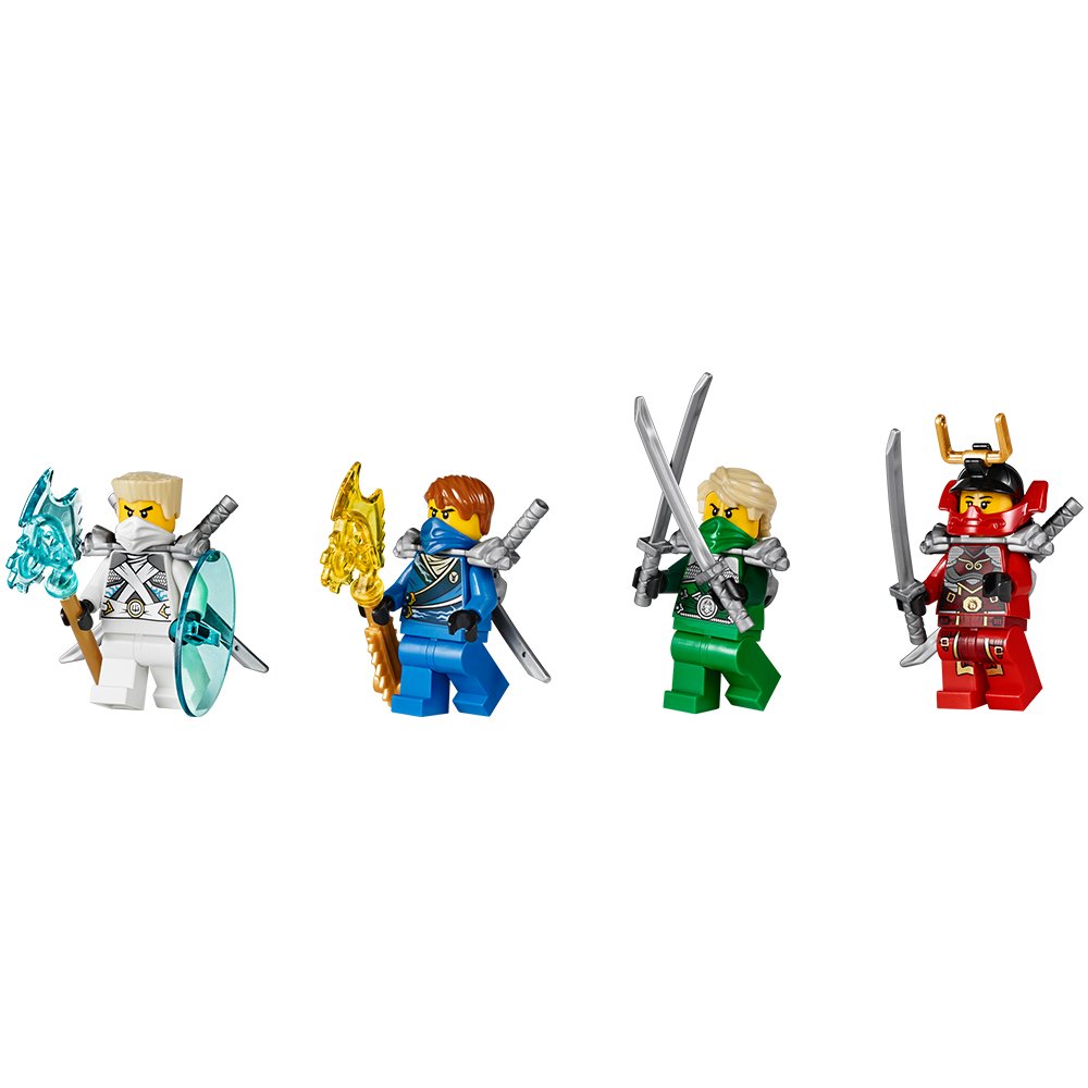 Jay, Lloyd, Zen, Meow, Sir Ober, three mini figures of Nindroid and weapons, with accessories.