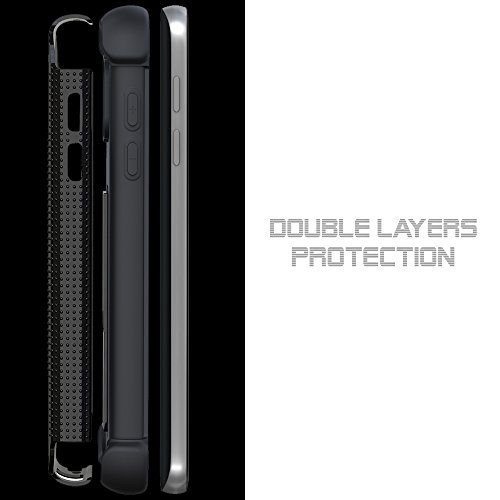 Look great and feel great with this premium protector! This case is designed to offer you offer you quality protection for your expensive device while leaving all the unnecessary bulk behind. A built-in kickstand offers you more convenience when viewing media on your device. Included with this combo set is a belt clip carrying holster designed specifically for use with the Armor case. Combined with the clear screen protector film, this Armor case combo set will offer your device the ultimate protection! Protecting your phone has never been this easier! Design -- The case itself will fit snugly onto your phone, with all features of your phone still accessible, and funactionable. This hybrid Armor case comes in 2 layers; the interior is made up of silicone skin gel, while the exterior is made up of hard polycarbonate (PC) plastic. Built along the hard polycarbonate plastic is the kickstand, which, when not in use, can be pushed back into the case.