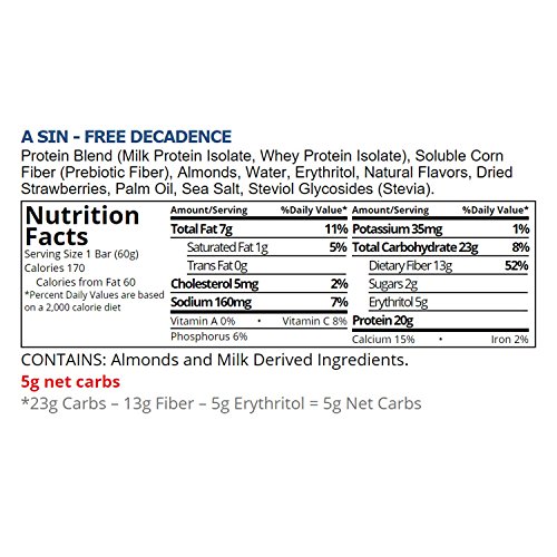-. Feature : 20g of Protein, 4g of net Carbs, 190cal / No added Sugar- Sweetened with Sucralose / All natural, Gluten and Soy Free / Made with high quality Whey and Milk Protein Isolates / Contains real Almonds, and Natural Flavors