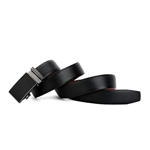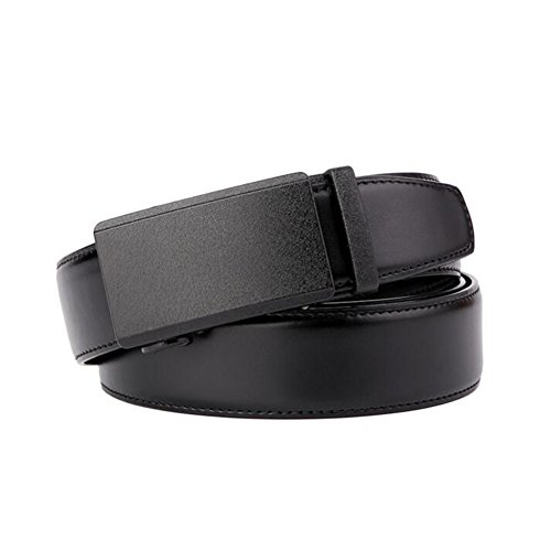 Men's Belt Ratchet Leather Dress Belt with Automatic Buckle 35mm Wide 27"-40" Plain Black