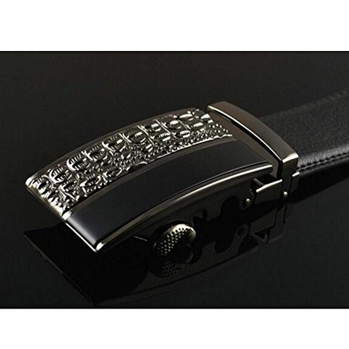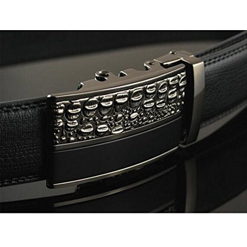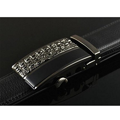 Men's Belt Ratchet Leather Dress Belt with Automatic Buckle 35mm Wide 27"-40" Crocodile Grain Black