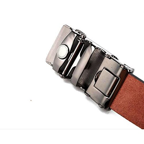 Men's Belt Ratchet Grain Leather Stitched Automatic Buckle Belt 28"-41" Buckle15