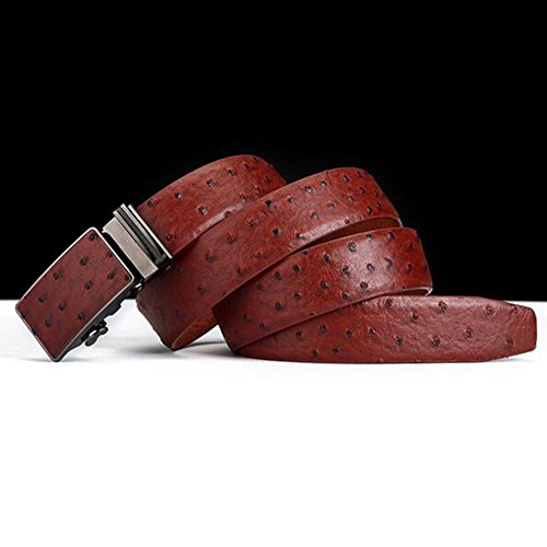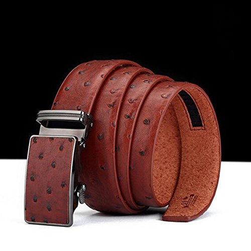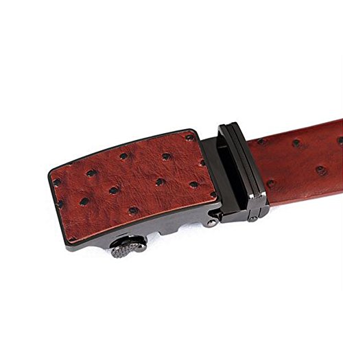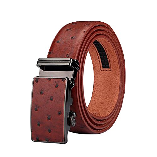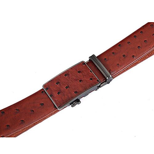 Men's Belt Ratchet Leather Dress Belt with Automatic Buckle 35mm Wide 27"-40" Ostrich Grain Brown