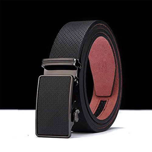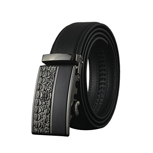 Men's Belt Ratchet Leather Dress Belt with Automatic Buckle 35mm Wide 27"-40" Embossed Black