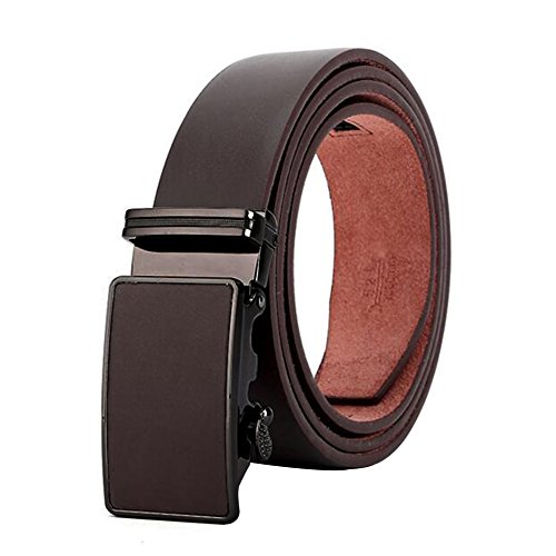 Men's Belt Ratchet Leather Dress Belt with Automatic Buckle 35mm Wide 27"-40" Plain Brown