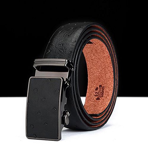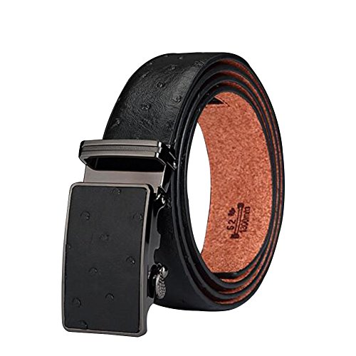 Men's Belt Ratchet Leather Dress Belt with Automatic Buckle 35mm Wide 27"-40" Ostrich Grain Black