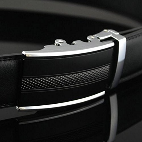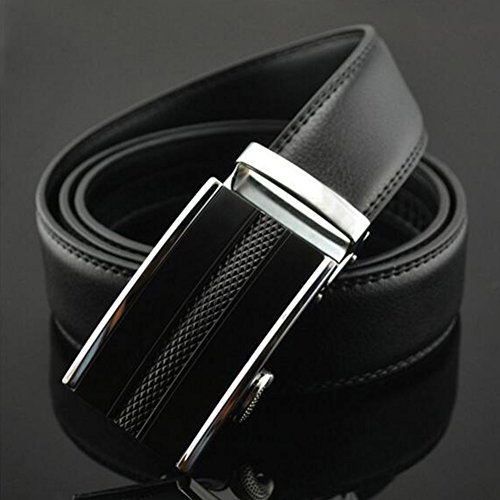 Men's Belt Ratchet Grain Leather Stitched Automatic Buckle Belt 28"-41" Buckle1