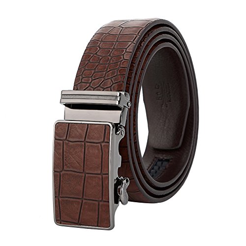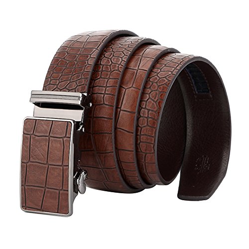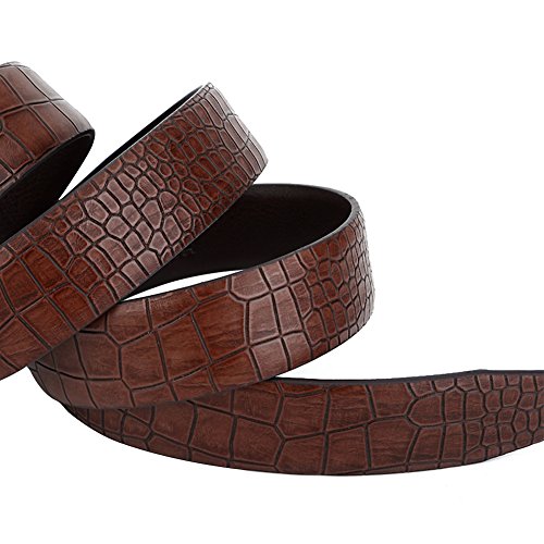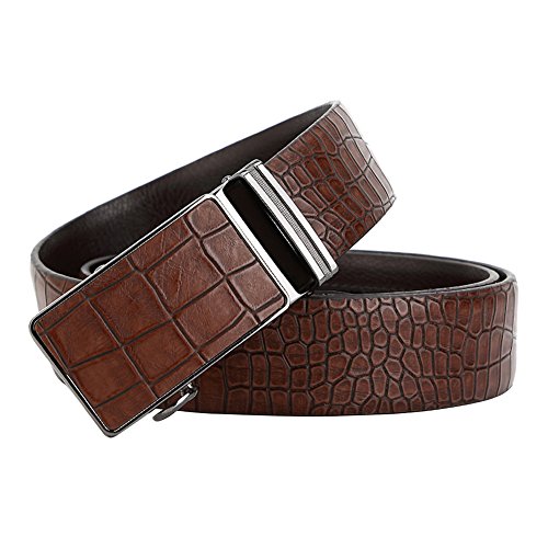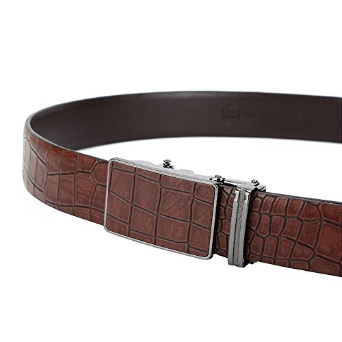 Men's Belt Ratchet Leather Dress Belt with Automatic Buckle 35mm Wide 27"-40" Crocodile Grain Brown