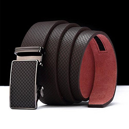 Men's Belt Ratchet Leather Dress Belt with Automatic Buckle 35mm Wide 27"-40" Embossed Brown