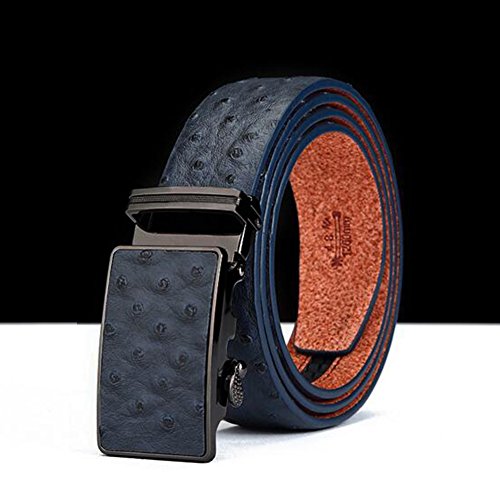 Men's Belt Ratchet Leather Dress Belt with Automatic Buckle 35mm Wide 27"-40" Ostrich Grain Blue