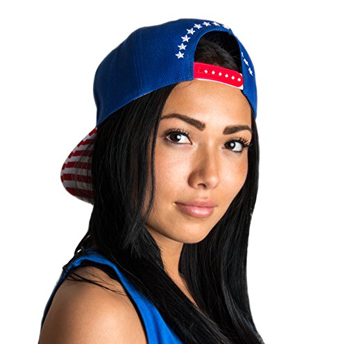 -. Feature : Adjustable snapback baseball hat with two-tone snaps, just like Thomas Jefferson envisioned / 3D raised embroidery on front, 13 stars across the back / Flag dyed across top and bottom of brim, that men of the earth and eagles of the heavens alike may partake in its glory / "Land of the Free" taping on the inside, as close as possible to your brain / Caution: Wearing of this hat implies that you are ready to arm wrestle a Soviet strongman at a momen'ts notice for national honor. Be prepared for this should you purchase.