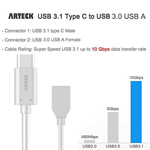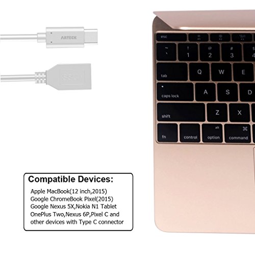 Arteck USB 3.1 Type C Male to USB 3.0 female OTG converter cable adapter for New 12 inch Macbook MacOS, Chromebook Pixel, Nexus 5X, Nexus 6P, Nokia N1 Tablet, OnePlus 2 and More