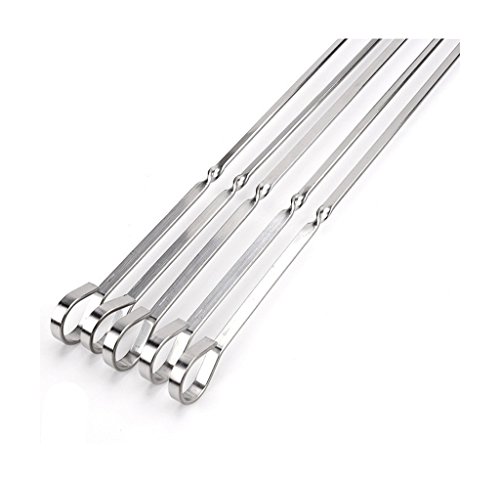 Product Description The thickened stainless steel flat BBQ shish kebab (kabob) skewers, these skewers feature an extra long heavy gauge stainless steel blade and secured in a strong riveted wood handle, perfect for grilling larger quantities of your favorite shish kebab (kabob) meats, whole medium size chickens, sausage, vegetables roasts and other foods perfect for the open flame.