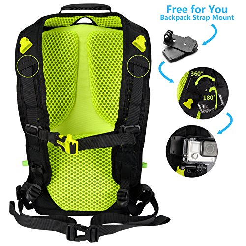 Flexible view,adjustable backpack strap mount (free) keeps your camera within reach and always ready to capture the action in any point of view.Specially designed over-the-shoulder system lets you use an extended 3-way to capture over-the-shoulder shots during your adventure