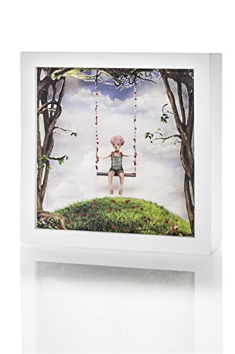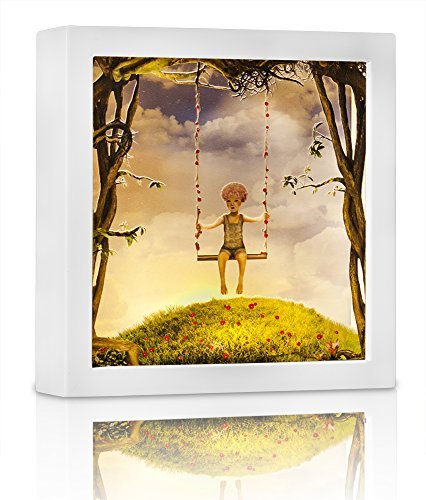 APPEARANCE:Adorable 3D Printings of Swing Fairy scene on Acrylic Boards in high quality Wooden Frame, Beautiful and lovely. Not only can be used as night light but also be used as a Nursery decorative item on day time. Comes in an exclusive open window gift box.