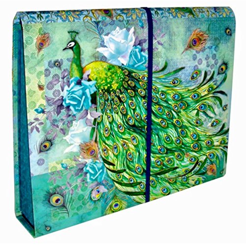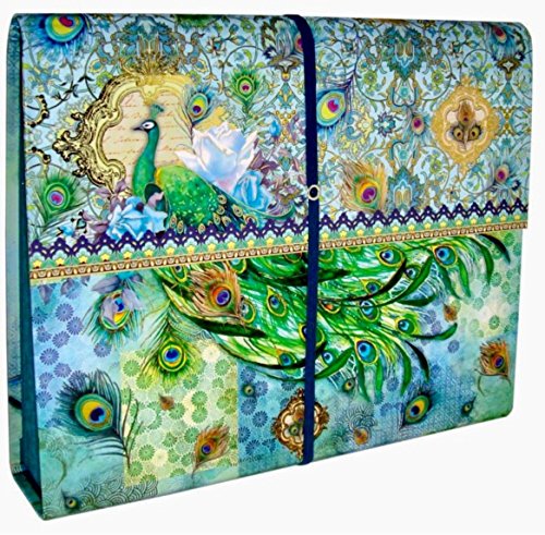 Punch Studio Accordion File Holder with Bungee Closure - Blue Rose Peacock 65727