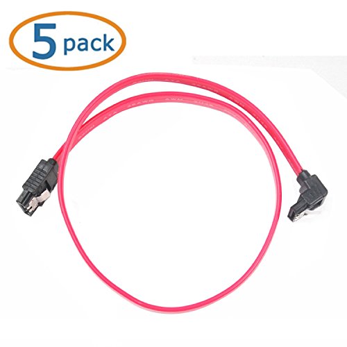 Sata Cable, WOVTE Red 18-Inch SATA III 6.0 Gbps Cable with Locking Latch and 90-Degree Plug Pack of 5