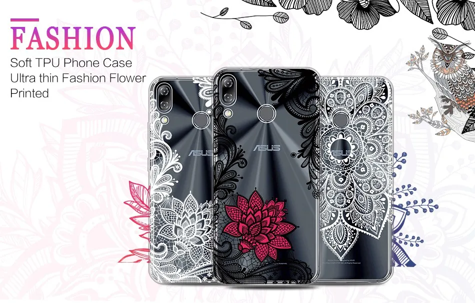 Compatible Phone Model 2:Fashion Flower Coque For ASUS Zenfone 5z ZS620KL Phone case