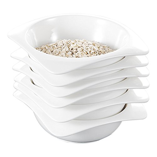 Malacasa, Series Rosana, 6-Piece 5.5" 12oz Ivory White Porcelain Dinnerware Bowl Set, Ceramic Cream White Cereal Bowls (14x14x5cm)