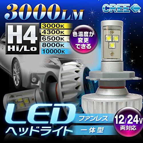 MAXWIN (Max win) head light fog light one-piece integrated fanless LED 3000 lumens new CREE chip H4 Hi / Lo Hi-Lo 3000Lm 2200Lm 12V 24V compact and fan-in-one-less compact size size H4 LED headlight L