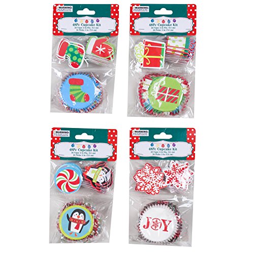 You can choose: 192 piece set of liners and topper, good for 96 decorated cupcakes, 400 mini 1.25 in. cupcake liners or 200 standard 2 in. cupcake liners. All featuring bright and joyful holiday motifs.