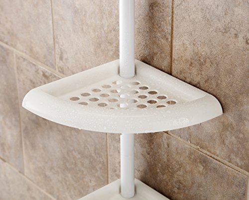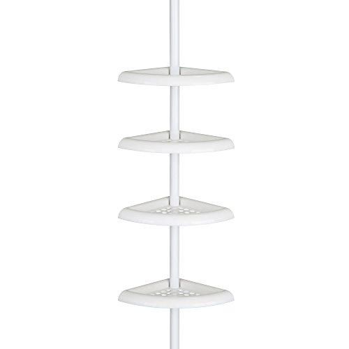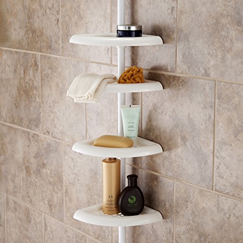 Organize your bath and shower necessities with this 4-Tier Tension Pole Shower Caddy by Kenney. This plastic pole caddy adjusts up to 9ft (274 cm) to fit standard ceiling heights and features four shelves. The shelf design allows for water drainage and easy cleaning. The location of the shelves are adjustable to meet your personal preference. Installation iinstructions are included.