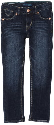 Levi's skinny denim jeans for girls offer modern styling and a comfortable fit she'll love. Stretch material and an adjustable elastic waistband ensure a flattering fit, while accents like embroidered stitch on the back pocket give this jean a fashion-forward look.Feature