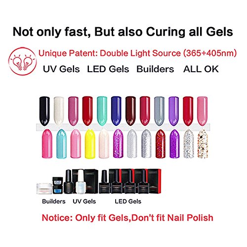 Applicable to all nail gels This lamp adopts advanced double UV LED technology, thus to made this nail dryer applicable to curing almost all nail gels, different from ultraviolet light, the special light has no harm to nails, eyes and skin.