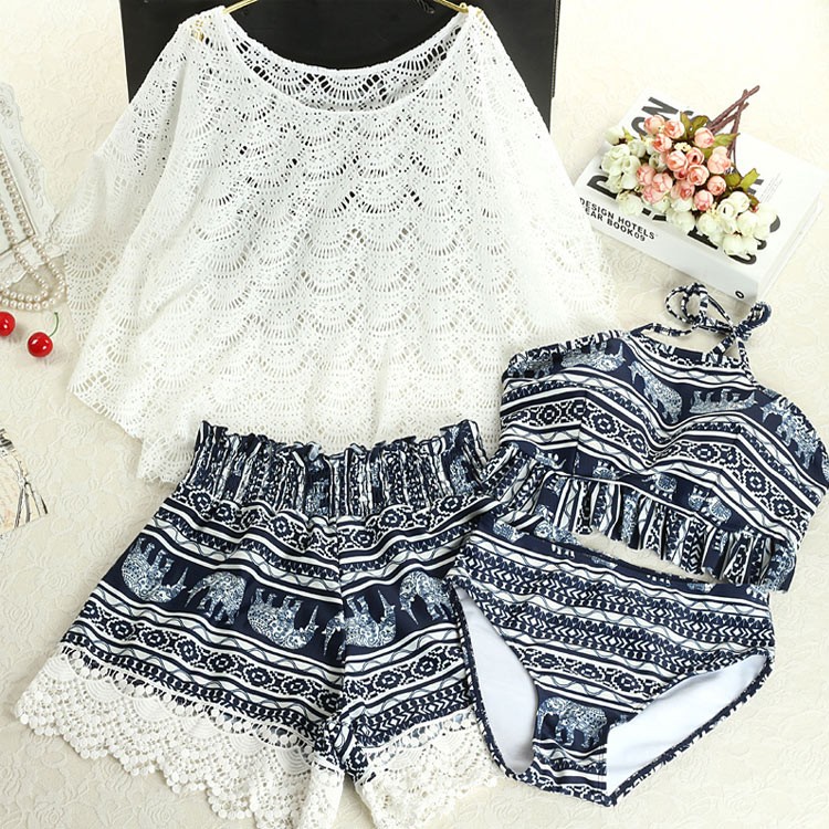 【製品仕様】■商品名水着 レディース 体型カバー 4点セット タンキニ セパレート ショートパンツ カーバアップ UVカット UV対策 レースカーバ セット フリル 可愛い ホワイト ネイビー 紺色 半袖 韓国水着 プール 海 ビーチ M L XL XXL■商品説明コーディネートの幅が広がる4点セット。リゾートから街歩きまで。ショートパンツ型だから、体型カバーもばっちり。クールなエスニック柄。■サイズ/寸法M: 155-160cm/(41-50KG) バスト70AB-75AB ウェスト60-66cmL: 160-165cm/(50-59KG) バスト75AB-80AB ウェスト66-74cm2L: 160-165cm/(59-65KG) バスト80AB-85AB ウェスト74-80cm3L: 165-170cm/(65-74KG) バスト85AB-90AB ウェスト80-86cm■素材/材質ナイロン、ポリエステル、ポリウレタンワイヤーあり、パードあり■色/カラーネイビー(4点セット)