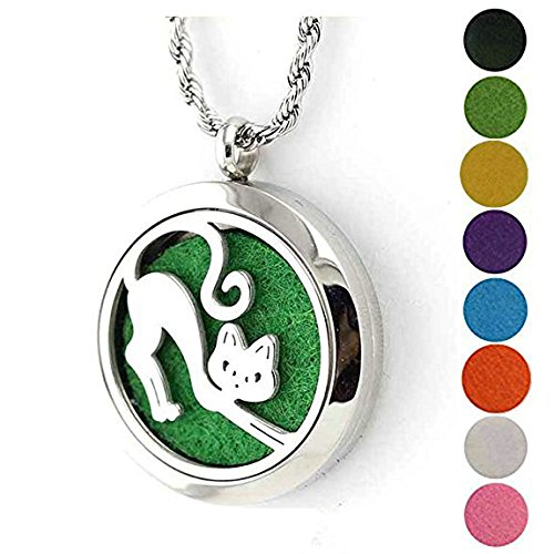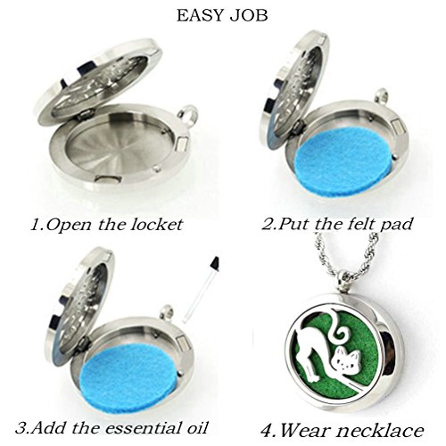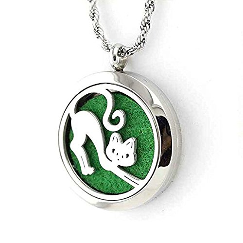 Cute Cat Aromatherapy Car Essential Oil Diffuser Necklace Stainless Steel Vent Locket Jewelry Clip Gift Set by JAOYU