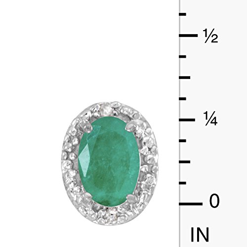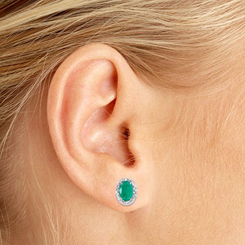 -. Title : 14k White Gold Oval Emerald And Diamond Earrings