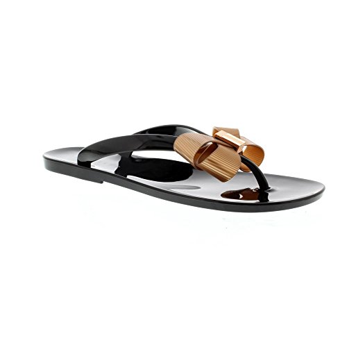 Product DescriptionA pair of stylish toe-post jelly sandals. Featuring an eye-catching bow on the toe post and a textured sole.0