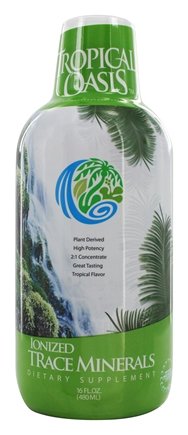 -. Binding : Health and Beauty -. Brand : Tropical Oasis -. EAN : 6220171000706 -. Feature : Tropical Oasis - Ionized Trace Minerals 16 oz / TROPICAL OASIS / 617279334578 / Brand New and Sealed -. IsAdultProduct : 0 -. Label : TROPICAL OASIS -. LegalDisclaimer : PLEASE NOTE: Product image is representative of the product offered but may not have the exact attributes. Please read product description for the specific attributes of this product. The information above is intended for reference only. While we attempt to keep our information accurate, we cannot guarantee it is an accurate representation of the latest formulation of the product. If you have any concerns, please visit the vendor's web site. The information above are the views of the product's manufacturer. These statements have not been evaluated by the Food and Drug Administration. This product is not intended to diagnose, treat, cure or prevent any disease. -. Manufacturer : TROPICAL OASIS -. MPN : 617279334578 -. PackageQuantity : 1 -. PartNumber : 617279334578 -. ProductGroup : Health and Beauty -. ProductTypeName : HEALTH_PERSONAL_CARE -. Publisher : TROPICAL OASIS -. Studio : TROPICAL OASIS -. Title : Tropical Oasis Ionized Trace Minerals - 16 fl oz
