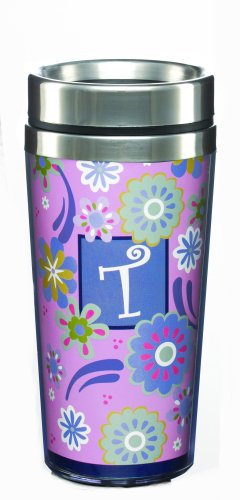GANZ Monogram Travel Steel Mug - T - Lilac Spring * Initially Hers
