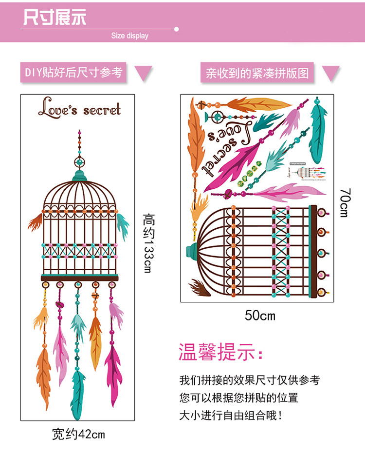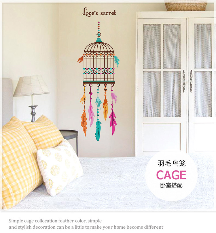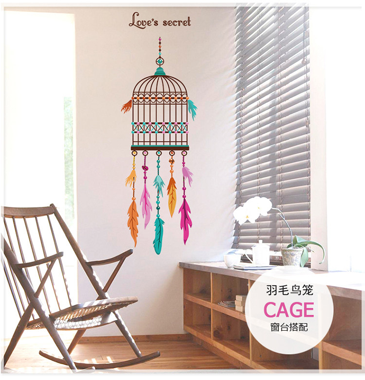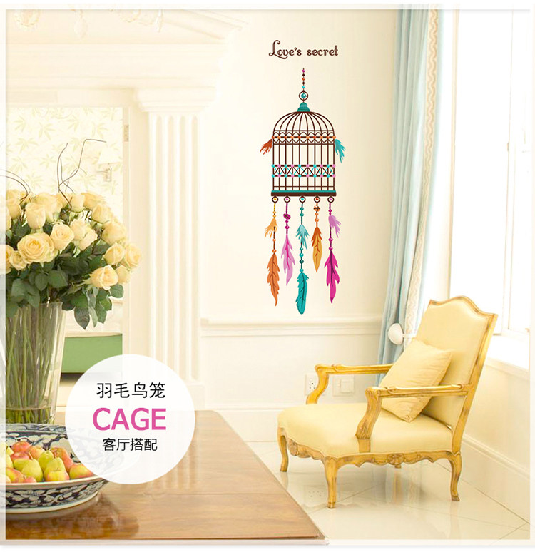 创意客厅墙壁墙纸贴画餐厅书房装饰品温馨卧室门贴个性鸟笼墙贴纸