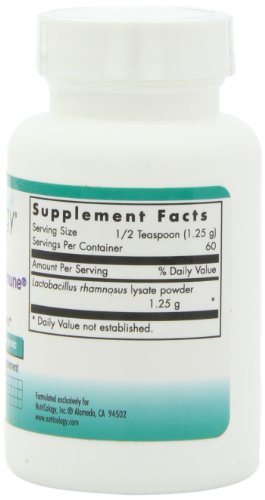 Studio : Nutricology Publisher : Nutricology Binding : Health and Beauty Product Description This contains Lactobacillus rhamnosus lysate powder. Lactobacillus cell wall fragments have shown significant immune system supporting properties.;Suggested Use: As a dietary supplement, 1/2 teaspoon two times daily, or as directed by a healthcare practitioner. Keep in a cool, dry place, tightly capped. Refrigeration not needed. 0