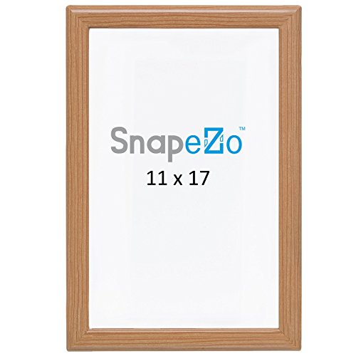 Light Wood Effect Poster Frame 11x17 Inches, 1.2" SnapeZo Profile, Front Loading Quick Poster Change, Wall Mounted, Professional Series