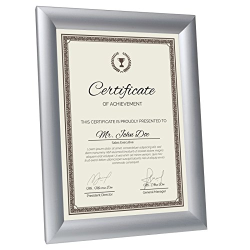 Silver Snap Document Frame 8.5x11 Inches, 1.2" SnapeZo Profile, Front Loading Quick Poster Change, Wall Mounted, Professional Series