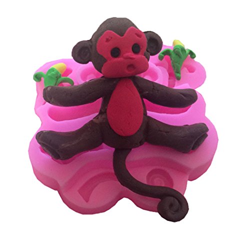 Efivs Arts Creative Cute Animal Series Silicone Mold Fondant Mold Cupcake Cake Decoration Tool, Monkey 3.5"
