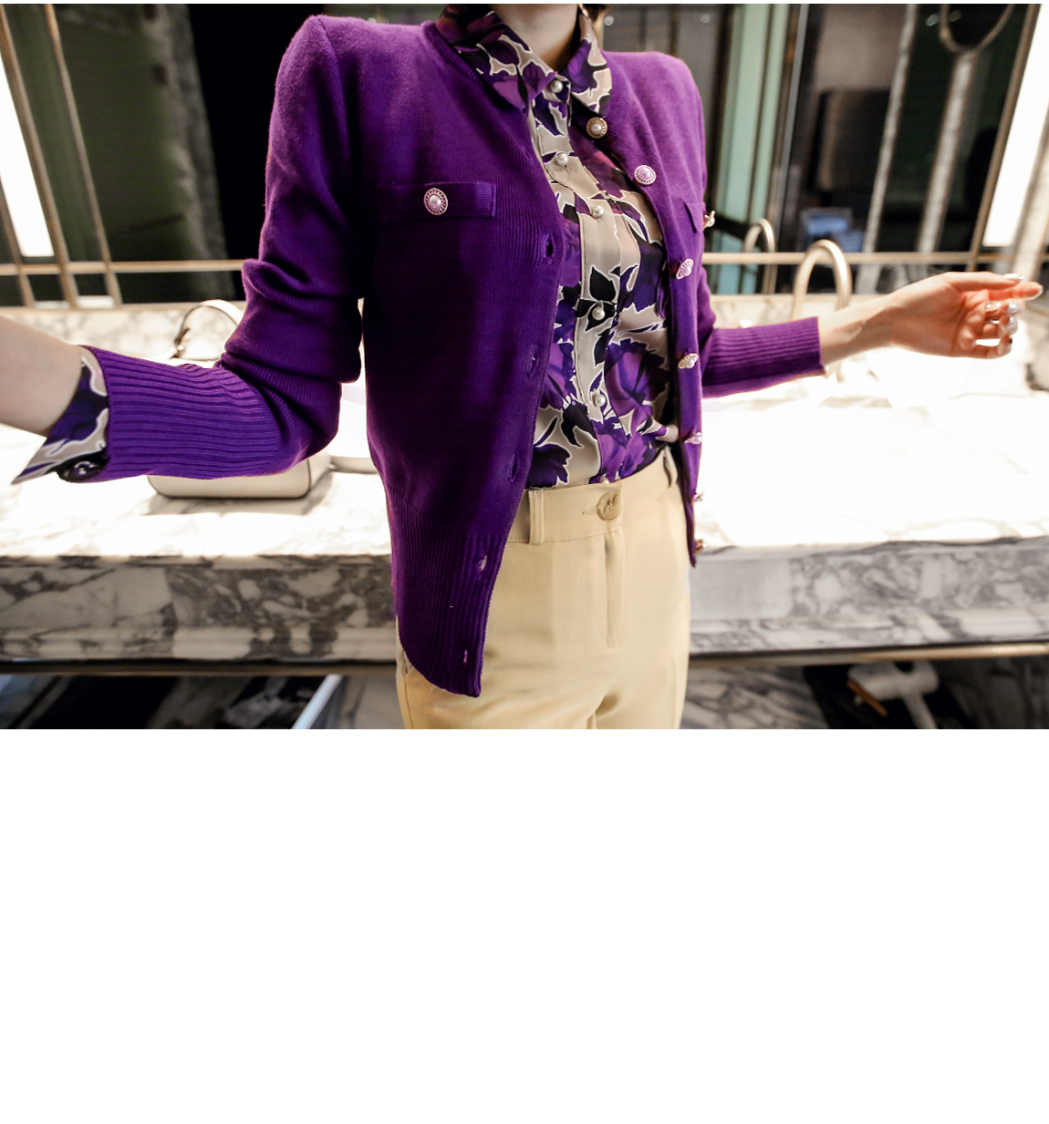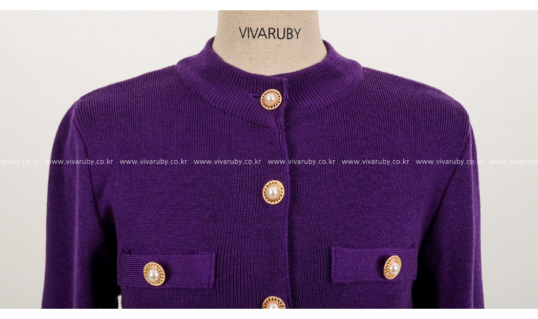 「ボタン真珠カーディガン」