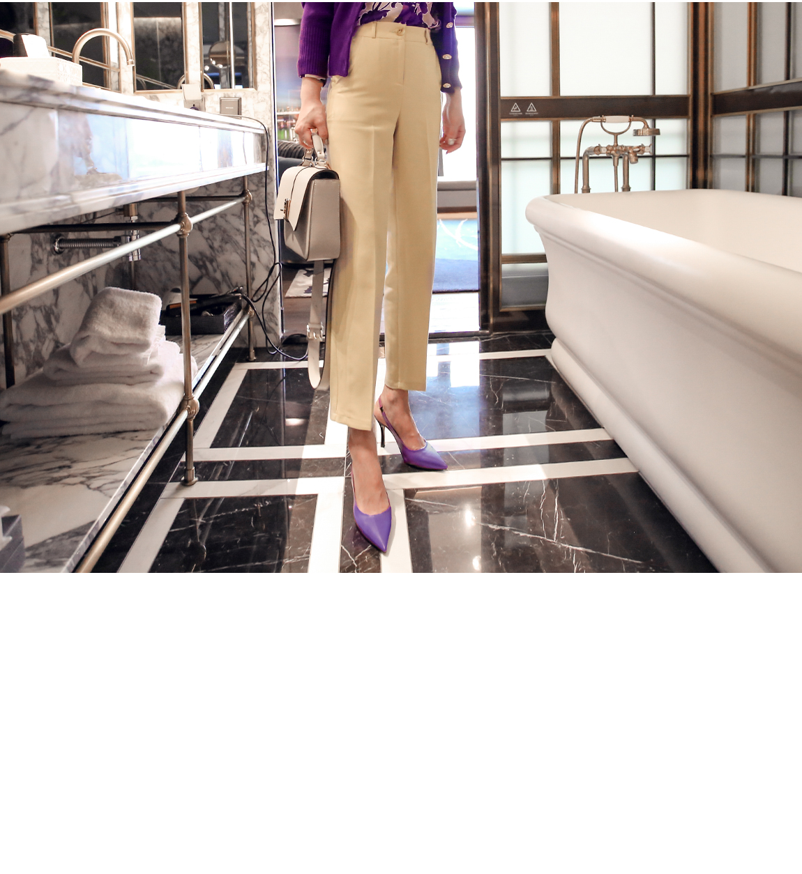 すっきりとしたワンピースとコーディネートしてオフィスルックにもおすすめ致します