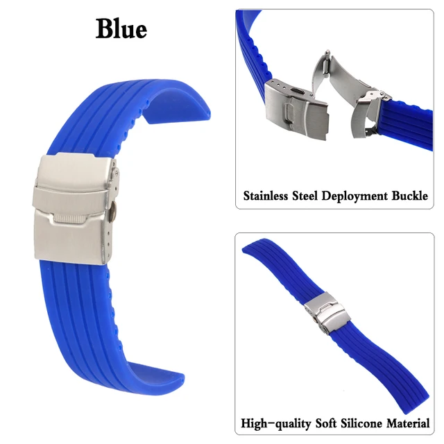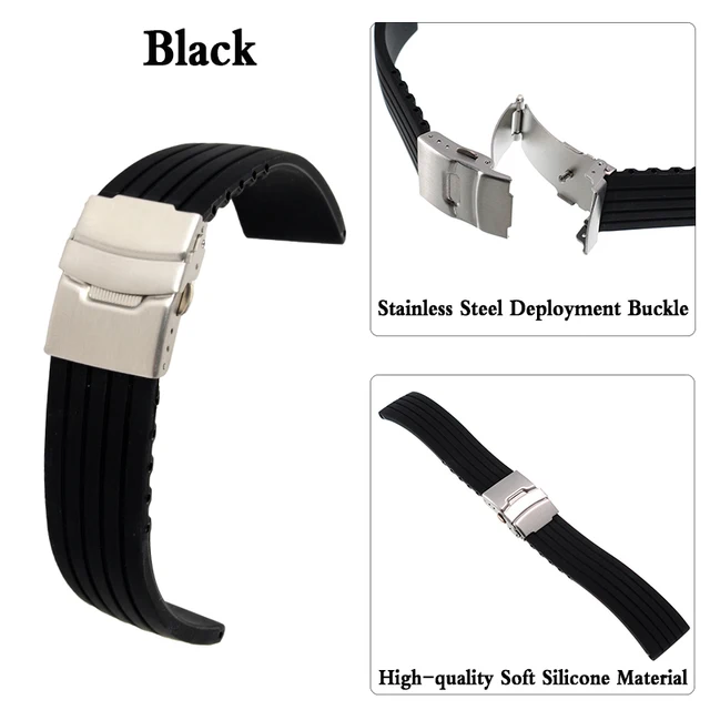| [해외]20 미리메터 22 미리메터 reloj 험 브레 실리콘 고무 시계 스트랩 배포 버클 방수 밴드 스포츠 손목 Sweatband 시계 스트랩 밴드 |
