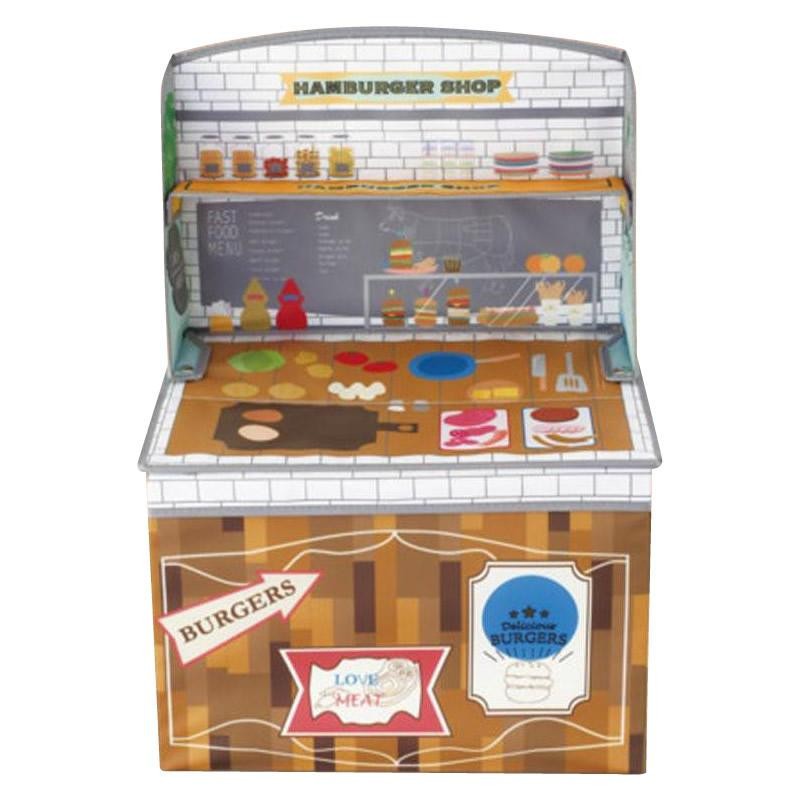 インテリアと教育を併せもったキッズ収納アイテム。蓋をあけると中身は大容量の収納ボックスになっていて、おもちゃなどを片づけることができます。おしゃれに飾れて、「ごっご遊び」でお子さんの社会性を高めるアイテムとしてもご利用いただけます。ハンバーガーショップをイメージしたデザインで子供ごころをくすぐります♪ |