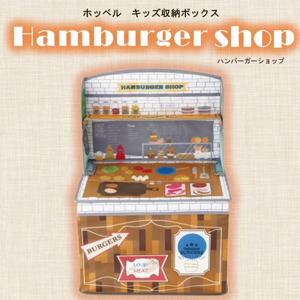 | インテリアと教育を併せもったキッズ収納アイテム。蓋をあけると中身は大容量の収納ボックスになっていて、おもちゃなどを片づけることができます。おしゃれに飾れて、「ごっご遊び」でお子さんの社会性を高めるアイテムとしてもご利用いただけます。ハンバーガーショップをイメージしたデザインで子供ごころをくすぐります♪ |