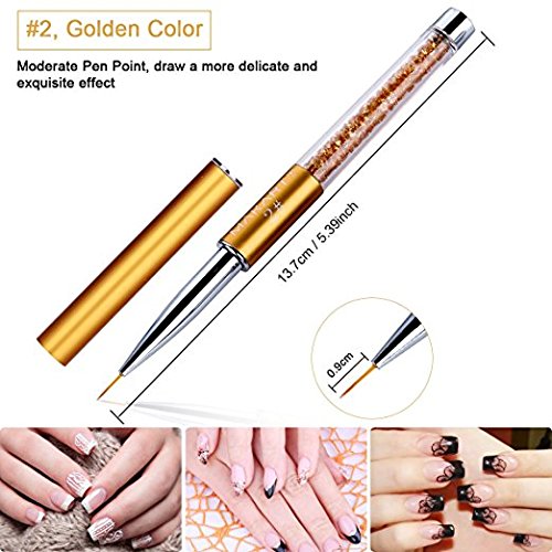 - 高品質.耐久性あり:ブラシペン本体は高品質材料(合金+ダイヤモンド+アクリル)で作られ、耐久性があり、日常生活のネールケア用が十分です。極細のブラシヘッド付け、ネールデザインのペイントにとても便利です。ハンドル内側の輝きラインストーンの飾りで、ブラシがより可愛いし、ファッショナブルになります。