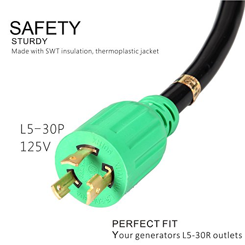 √ OUTDOOR USE– The generator power cable rated at 30 Amps can carry up to 3750 Watts of power from your generators. Extend your power up to 25 ft. away from hazardous generator exhaust