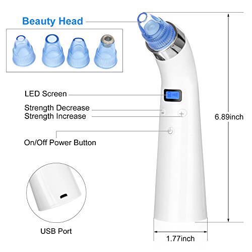 Blackhead Remover Comedo Vacuum Acne Suction Microdermabrasion Facial Pore Cleaner Tool Standable USB Rechargeable with 4 multi-function suction...