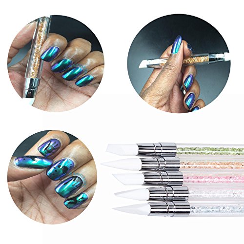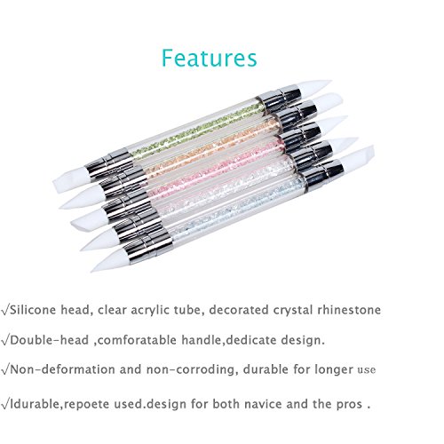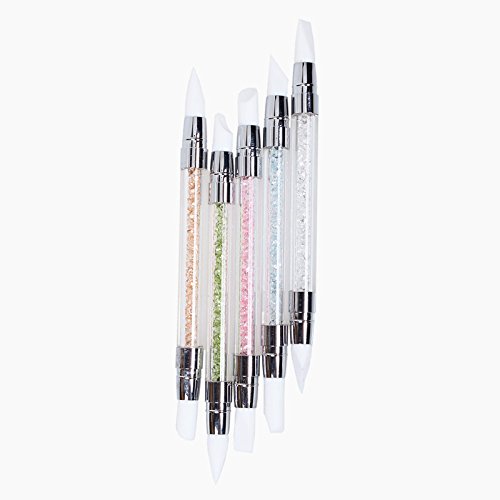 BTARTBOX 5PCS/SET 10 TIPS DOUBLE GEL NAIL ART SILICONE HEADS CARVING PEN BRUSHES NAIL BRUSH PENCIL WITH RHINESTONE ACRYLIC HANDLE,TAPER POINT, ANGLE CHISEL,FLAT CHISEL .ECT