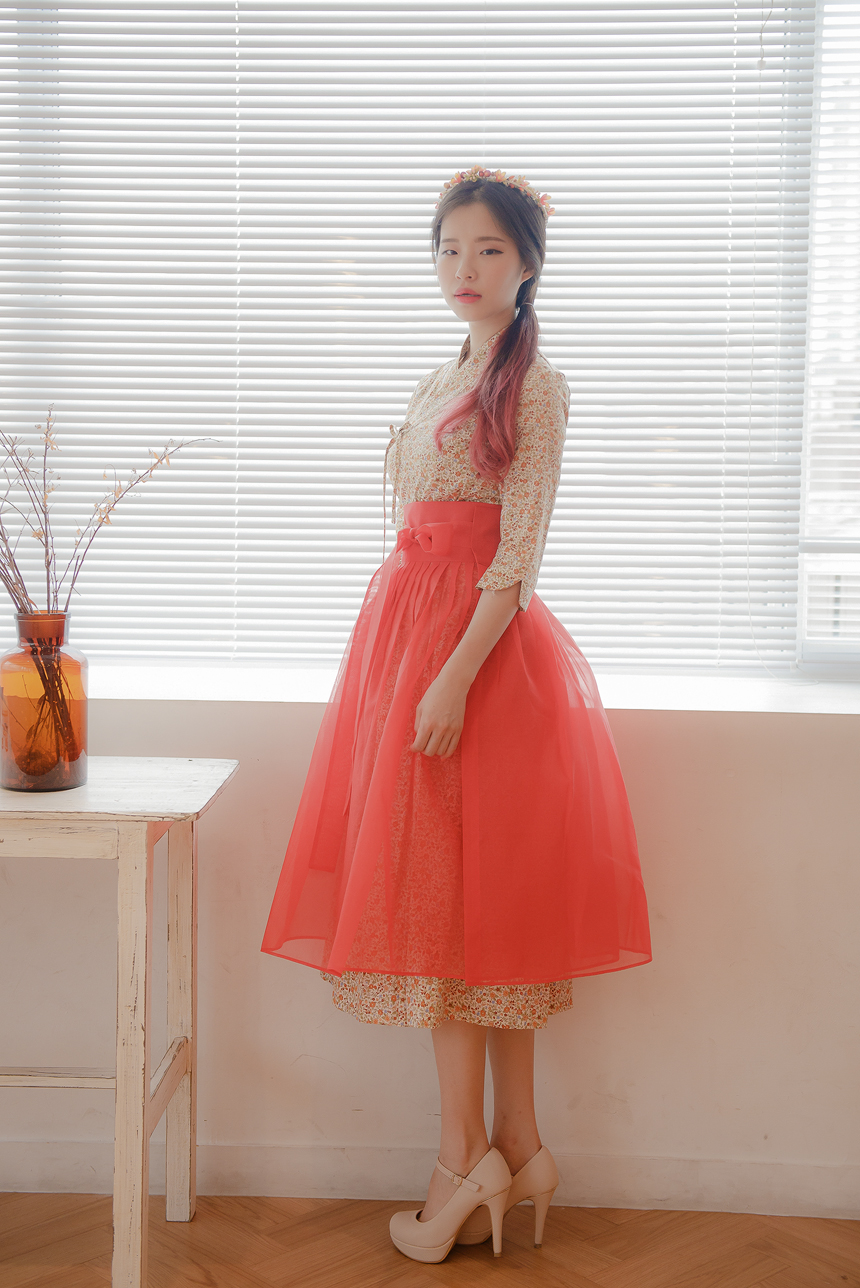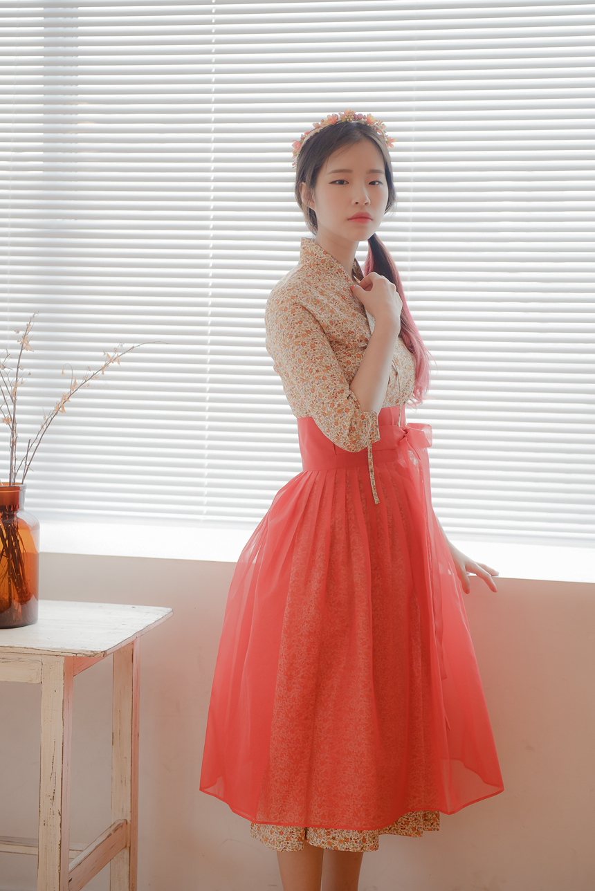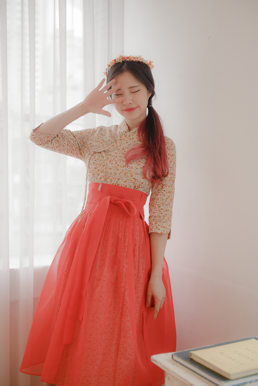 꽃닮 철릭원피스 허리치마 세트 홍시7부